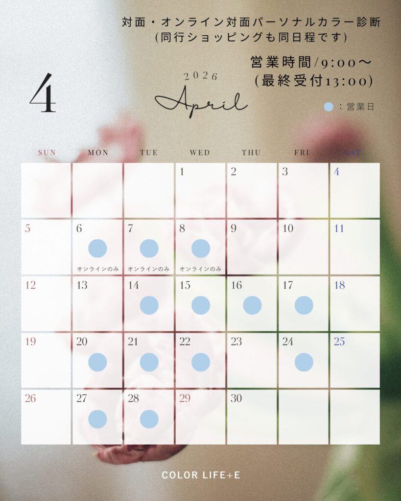 パーソナルカラー診断、4月の予約受付中です。