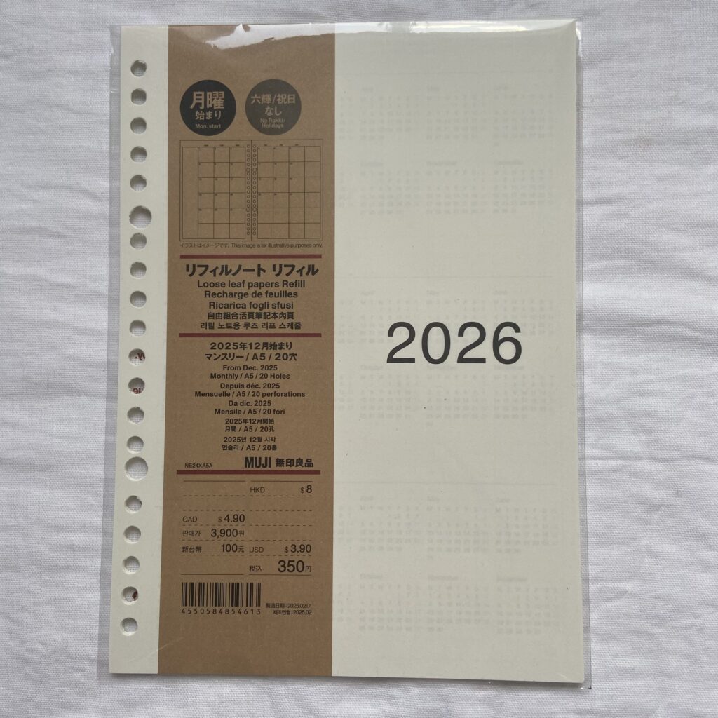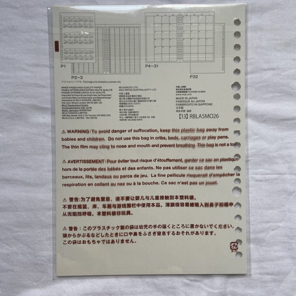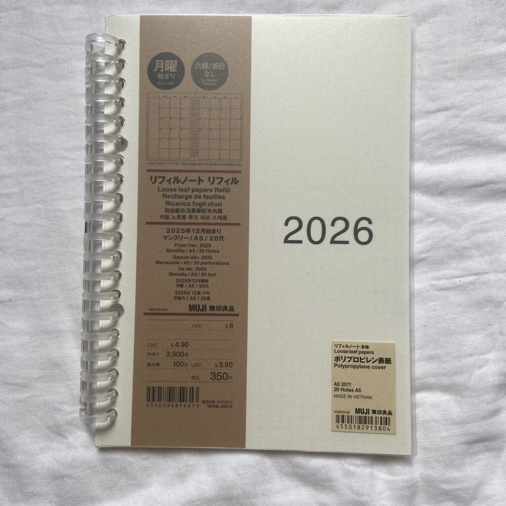 そこで今回、無印良品の A5サイズのルーズリーフ・リフィルノート・ポリプロピレン表紙 を購入して「中学受験専用スケジュールノート」を作ることにしました。
